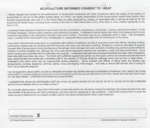 The image below is a standard letter describing possible side effects of various modalities of Traditional Chinese Medicine included within the scope of practice of a Licensed Acupuncturist. All patients are required to be informed before a treatment.